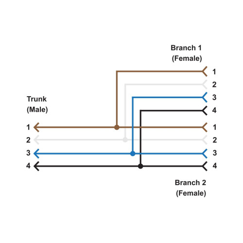 Splitter Cable, 4-pin M12 Male Trunk 0.3 m (1 ft), Two 4-pin M12 0.3 m (1 ft) Female Branches, Black