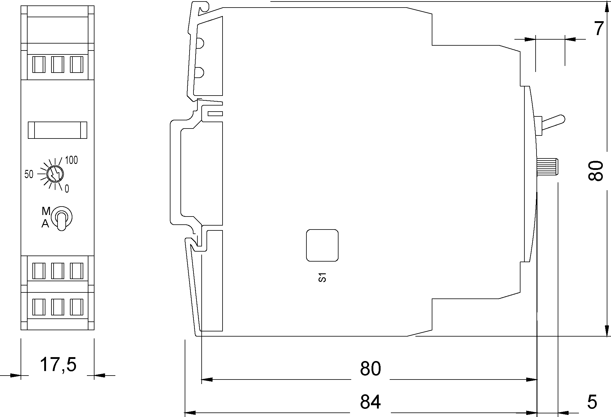 Interface converter with M-A switch 24 V AC/DC, 3-way separation ON: 0-10 MV