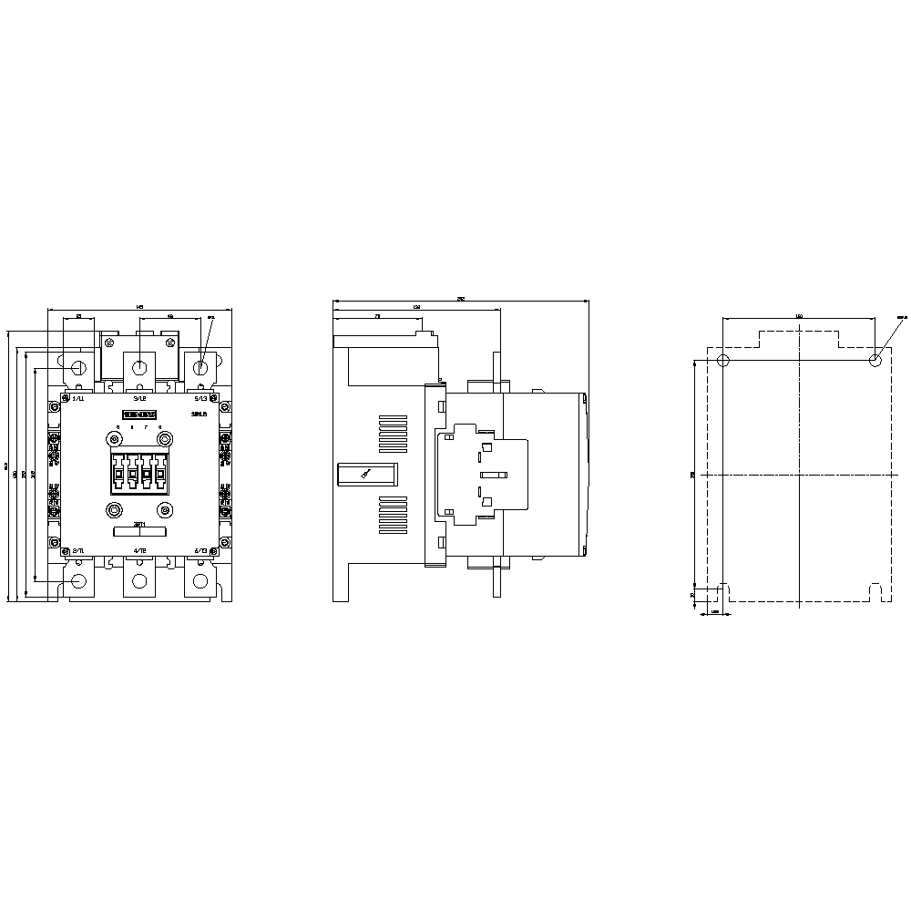 Contactor, AC-3e, 265 A/132 kW/400 V, 3-pole, 200-277 V AC/DC, PLC-IN optional, 2 NO+2 NC, connection bar/screw terminal