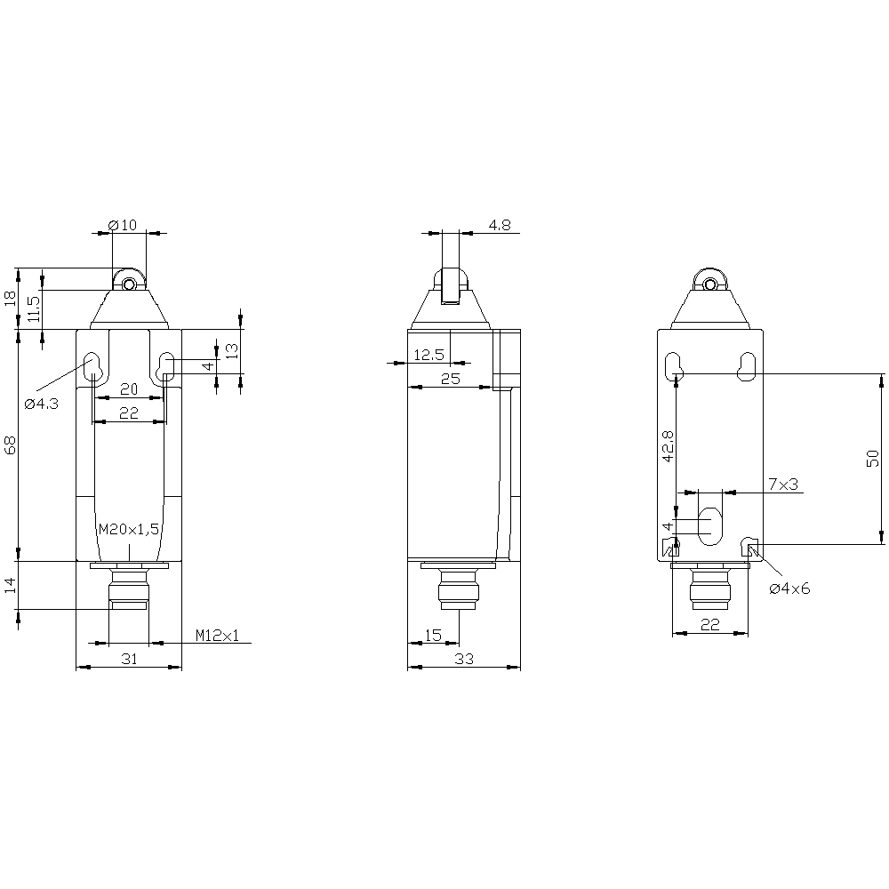 • Position switch with plastic roller plunger, 31 mm size according to EN 50047