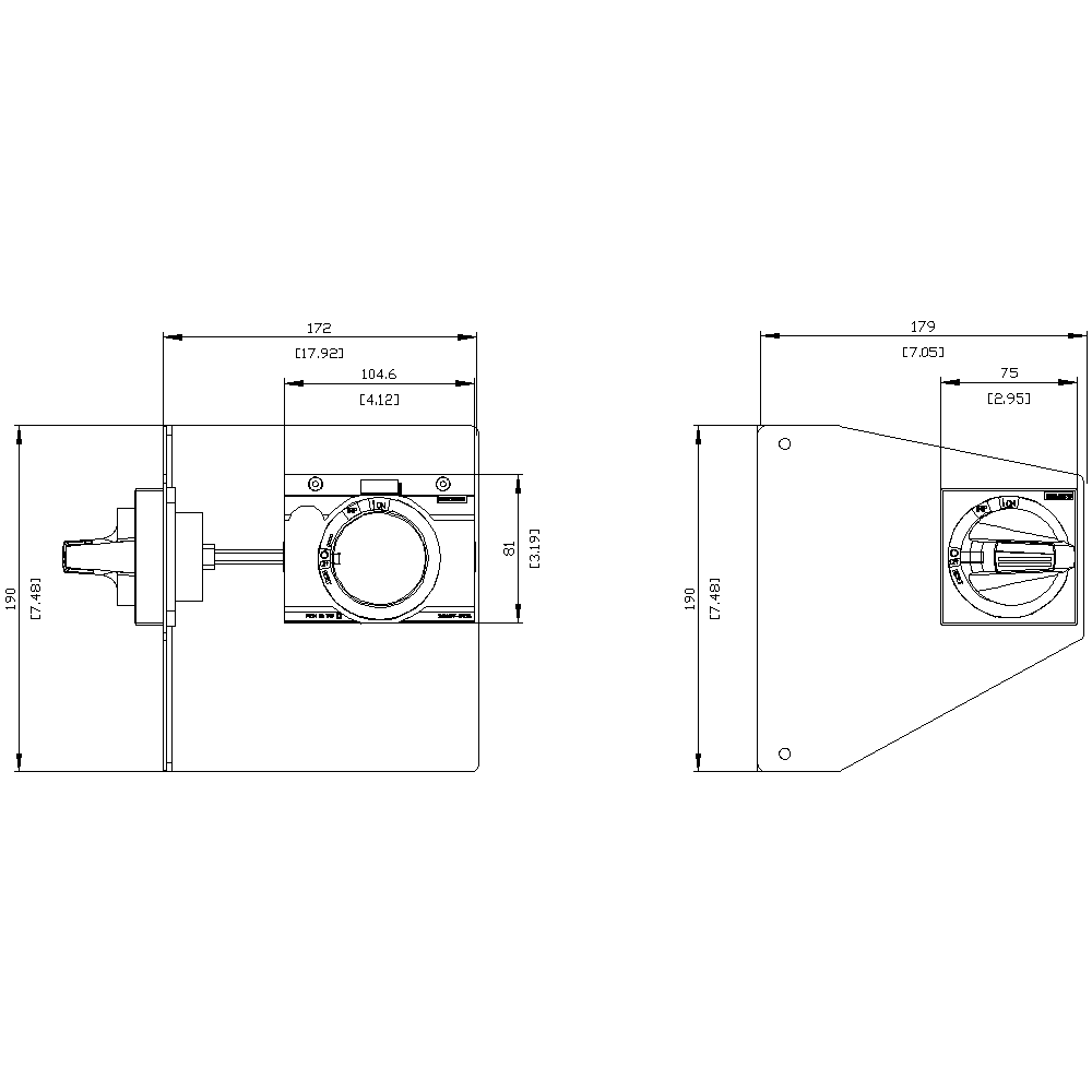 side wall mounted rot. operator emergency-off IEC IP65 with mounting bracket accessory for: 3VA6 150/250 3VA5 250