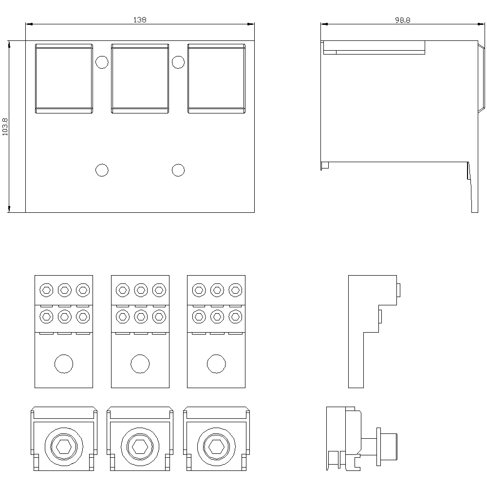 Circular conductor terminal, 6 wires, 3 units, for plug-in/withdrawable unit 3VA6 400/600