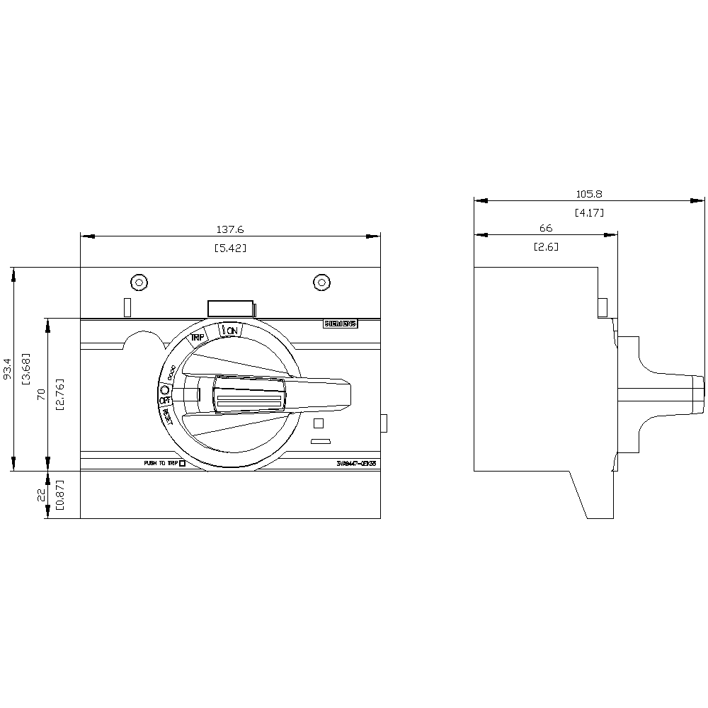 FRONT MOUNTED ROTARY OPERATOR EMERGENCY-OFF IP30 WITH DOOR INTERLOCKING AND DOOR-OPEN POSITION ACCESSORY FOR 3VA5/6 400/600