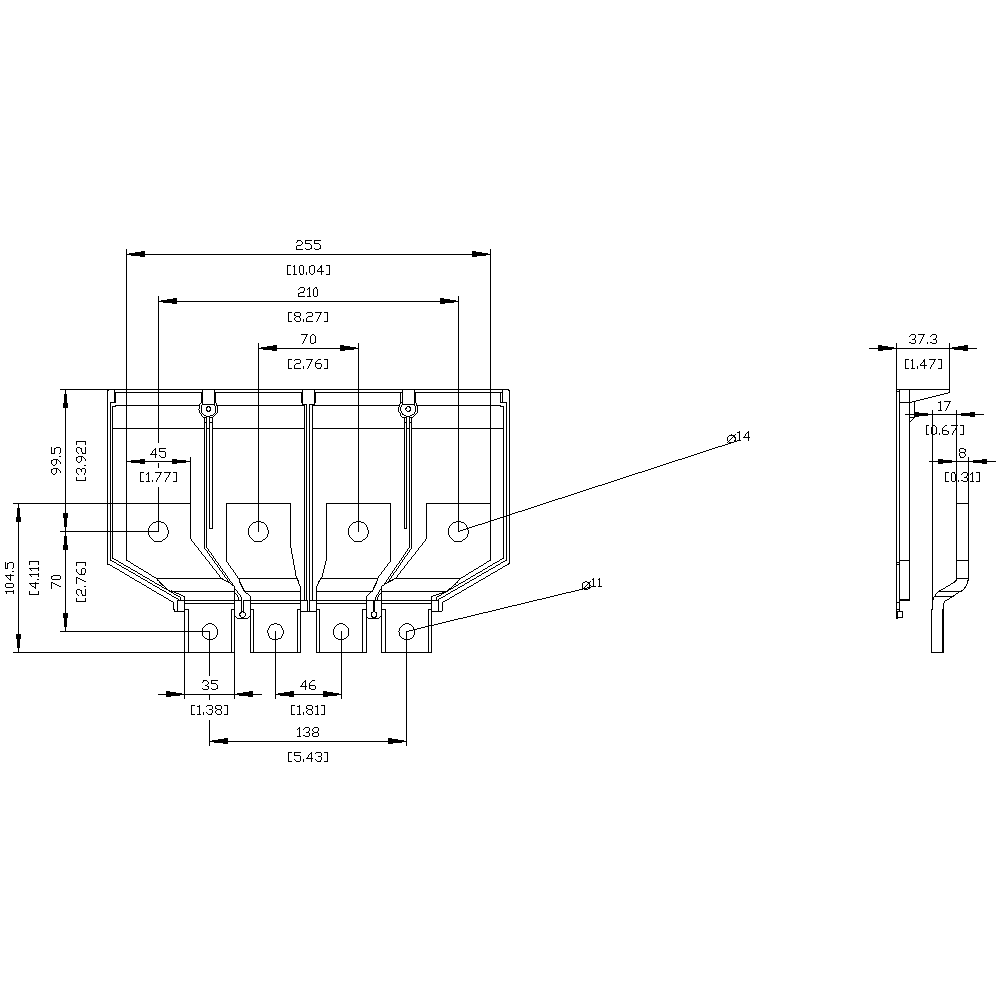 Front bus connectors offset, 4 units, accessories for: 3VA6 400/600.