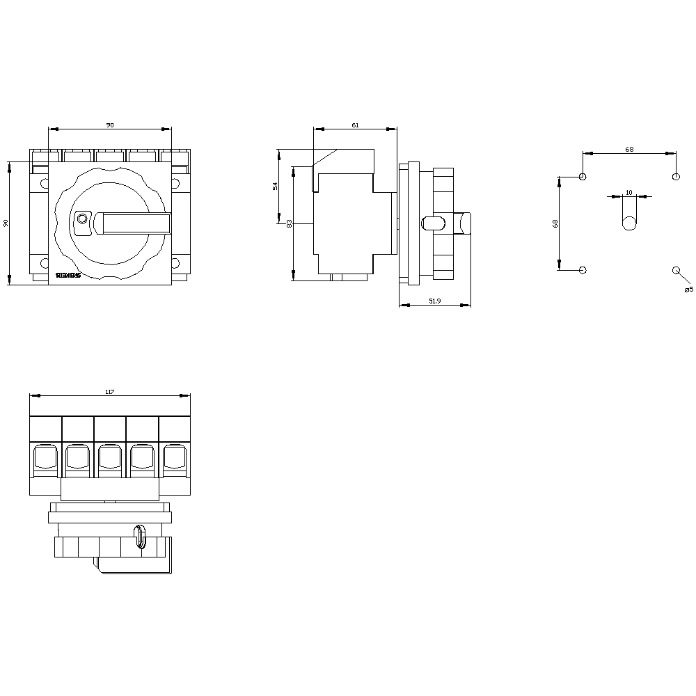 SENTRON, Switch disconnector 3LD, emergency switching-off switch, 4- pole, 100 A, operating power at