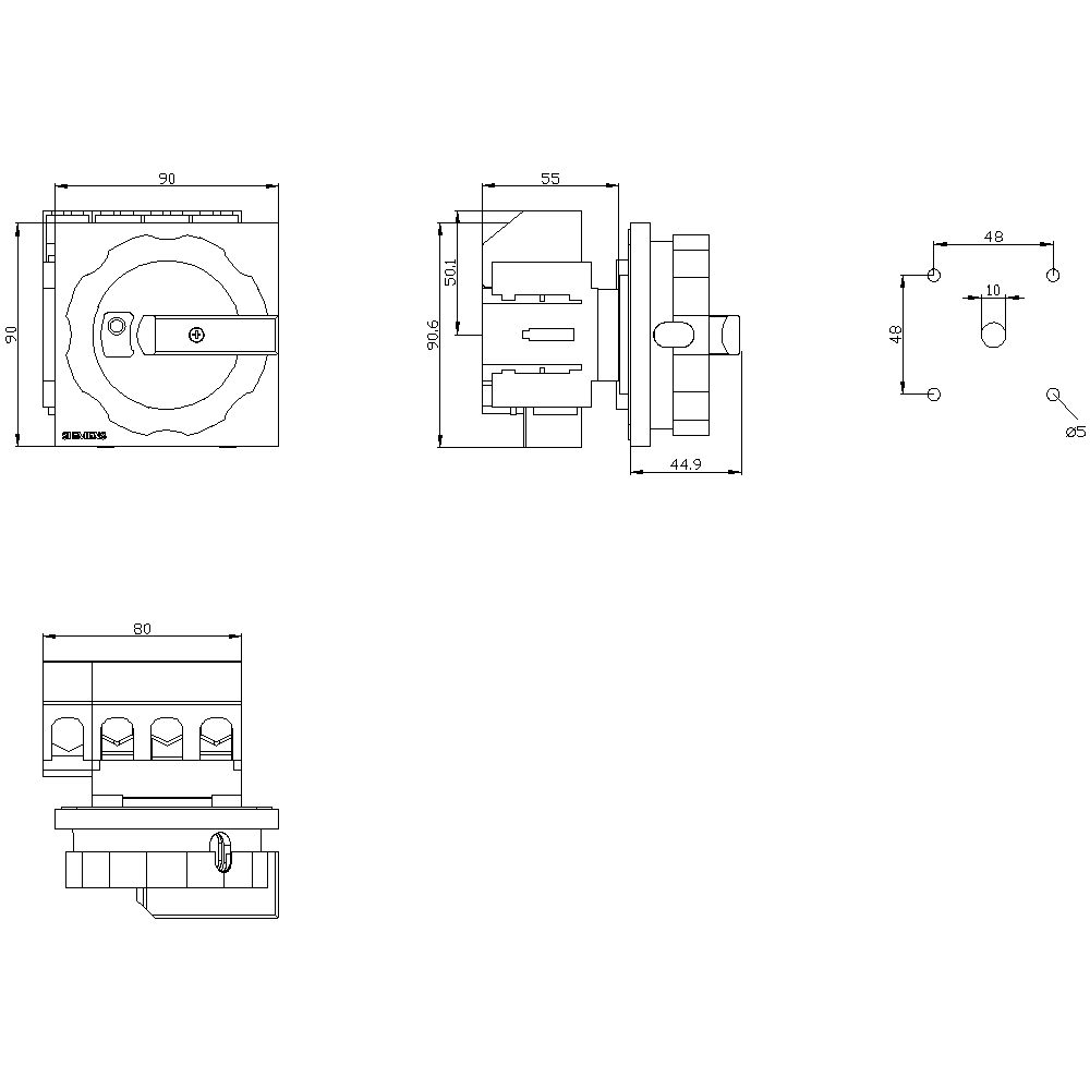 • Front-mounted, rotary operating mechanism