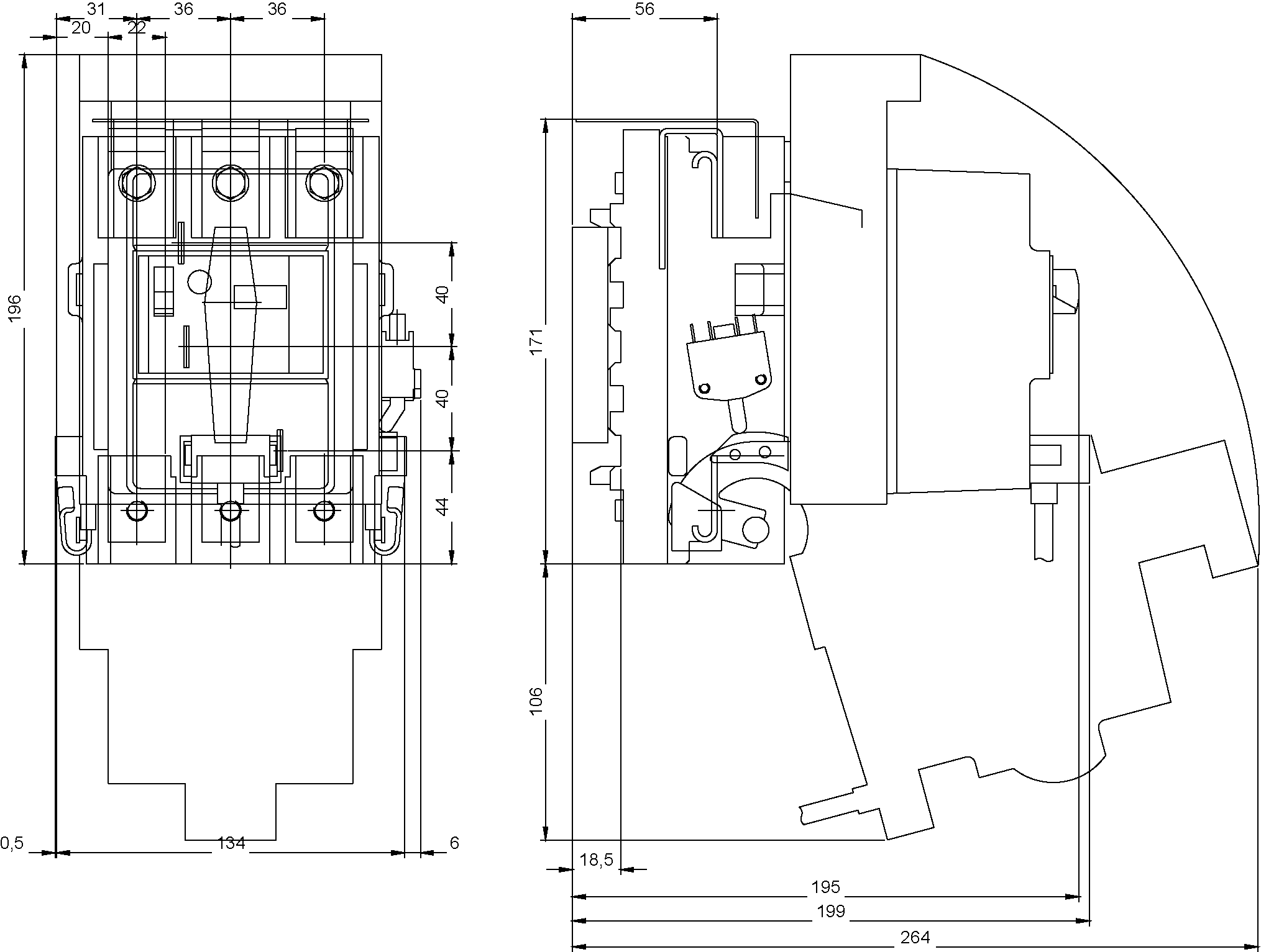 • Auxiliary switch at Fuse monitoring: 2 NO