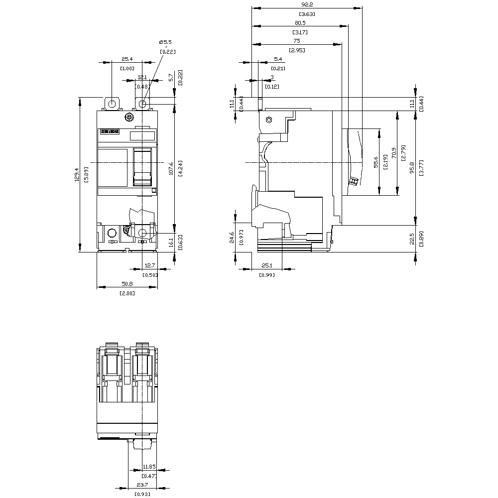 Molded case switch 3VA4 UL frame 125 max. short-circuit breaking capacity 65 kA