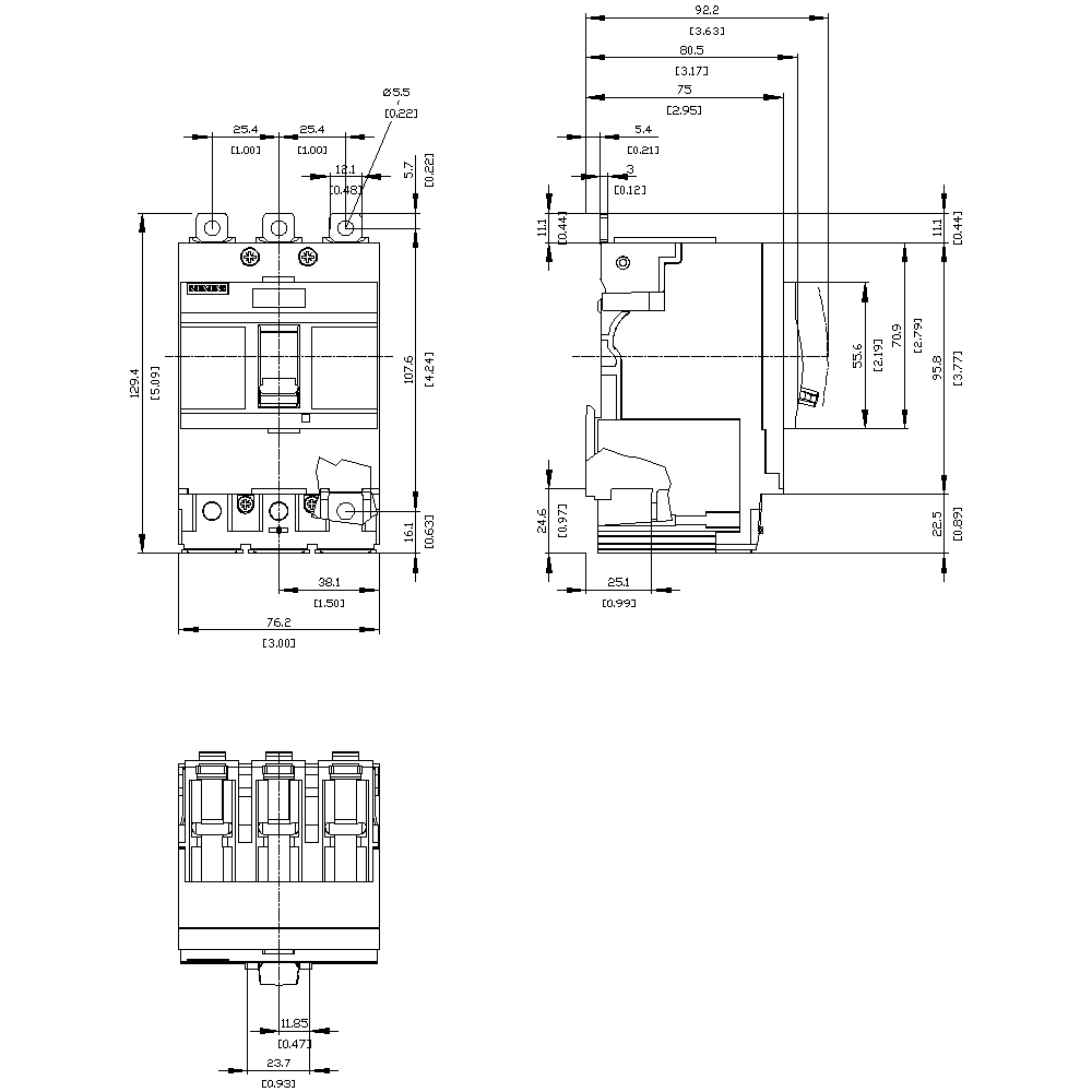 Molded case switch 3VA4 UL frame 125 max. short-circuit breaking capacity 65 kA