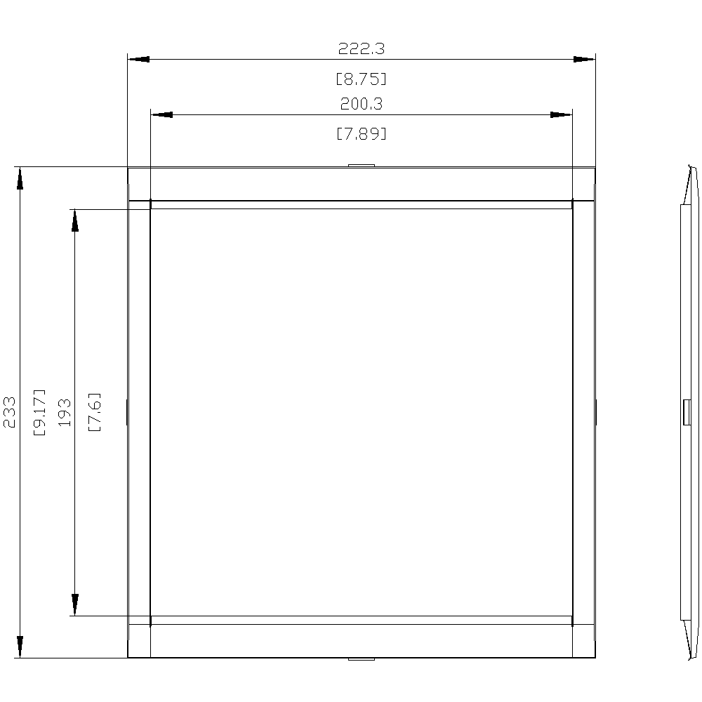 • Cover frame for door cutout: 200.3 x 193.8 mm (WxH)