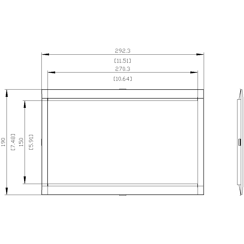 • Cover frame for door cutout: 270.3 x 150.8 mm (WxH)