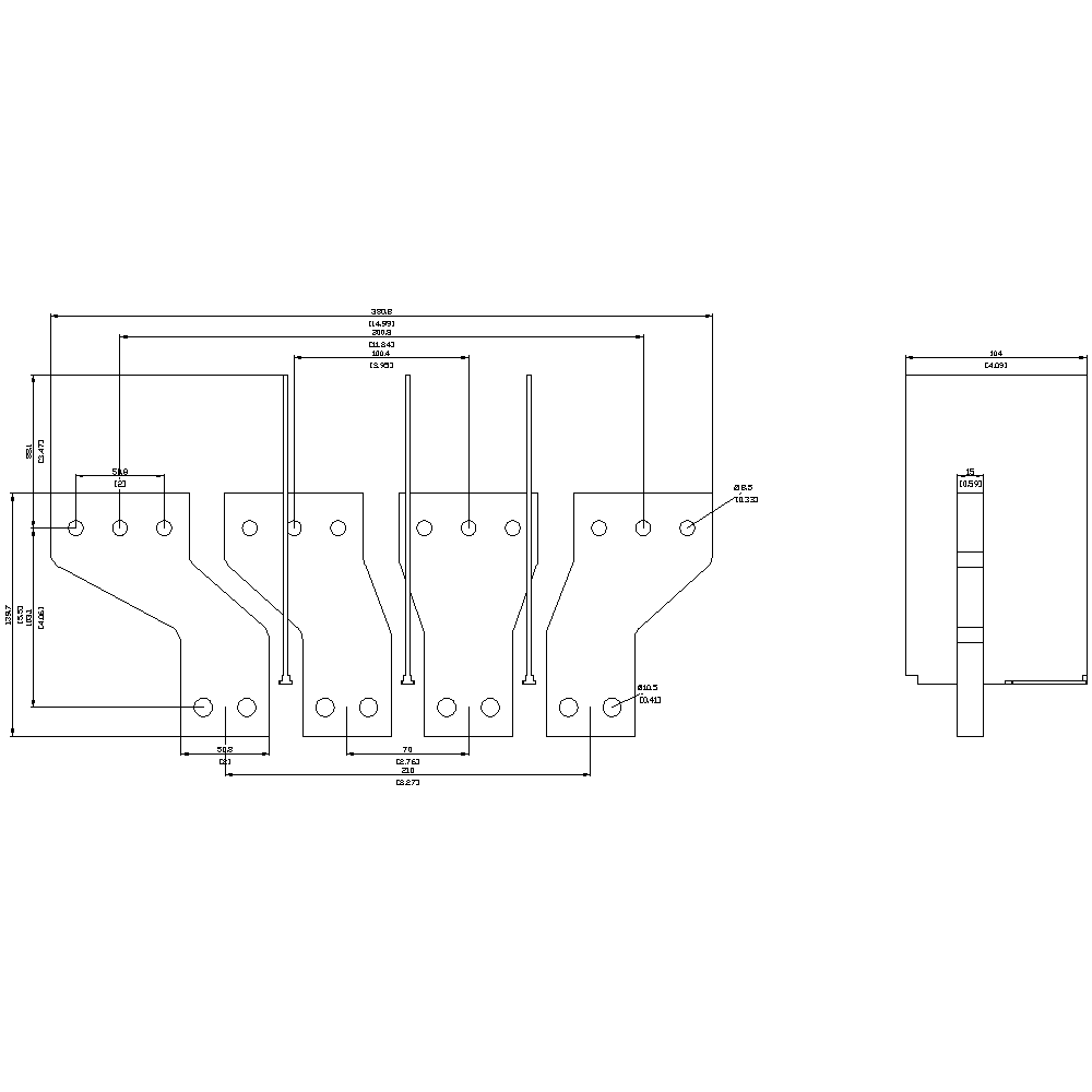 Front bus connectors broadened 4 units for 3VA55/65/66