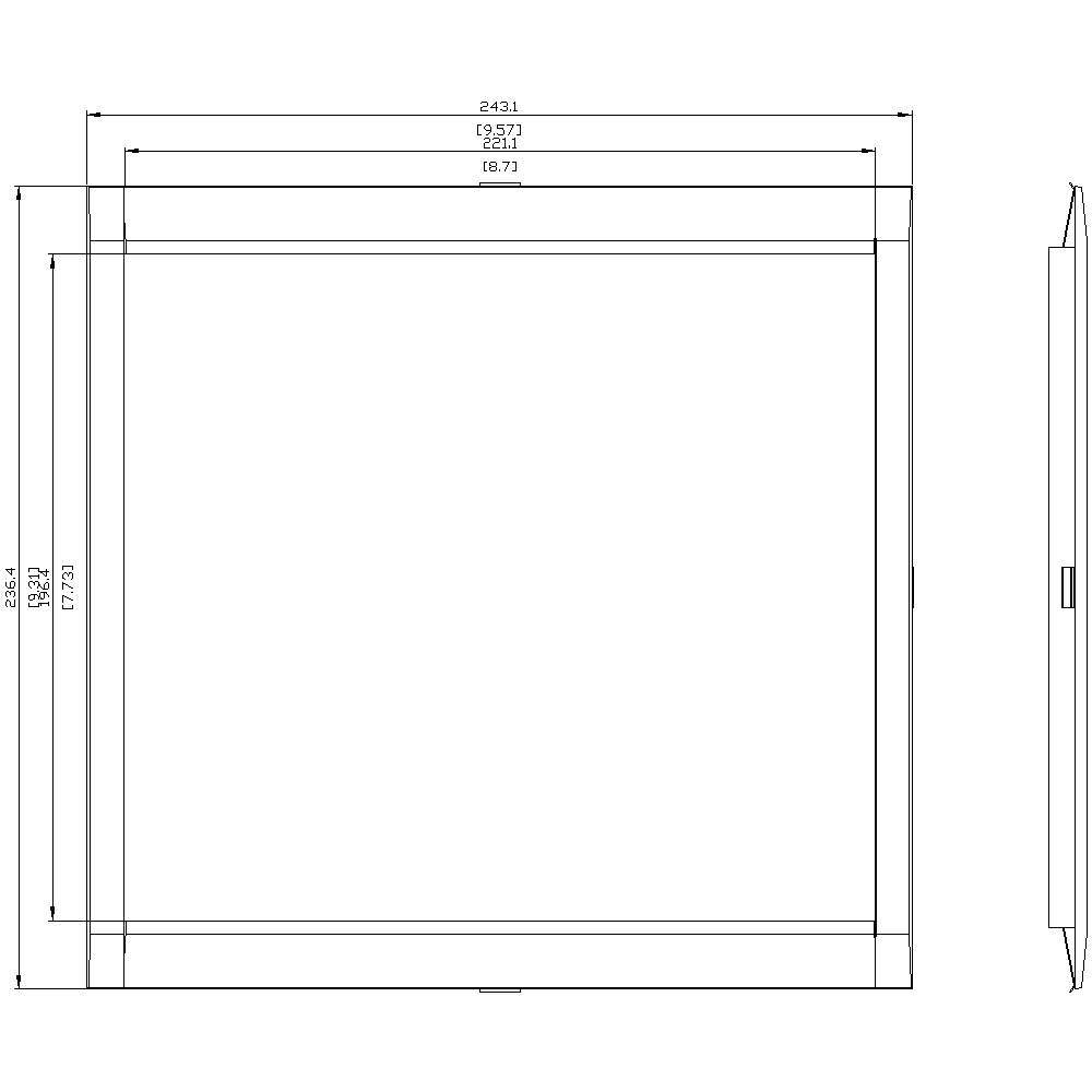 • Cover frame for door cutout: 221.1 x 196.4 mm (WxH)