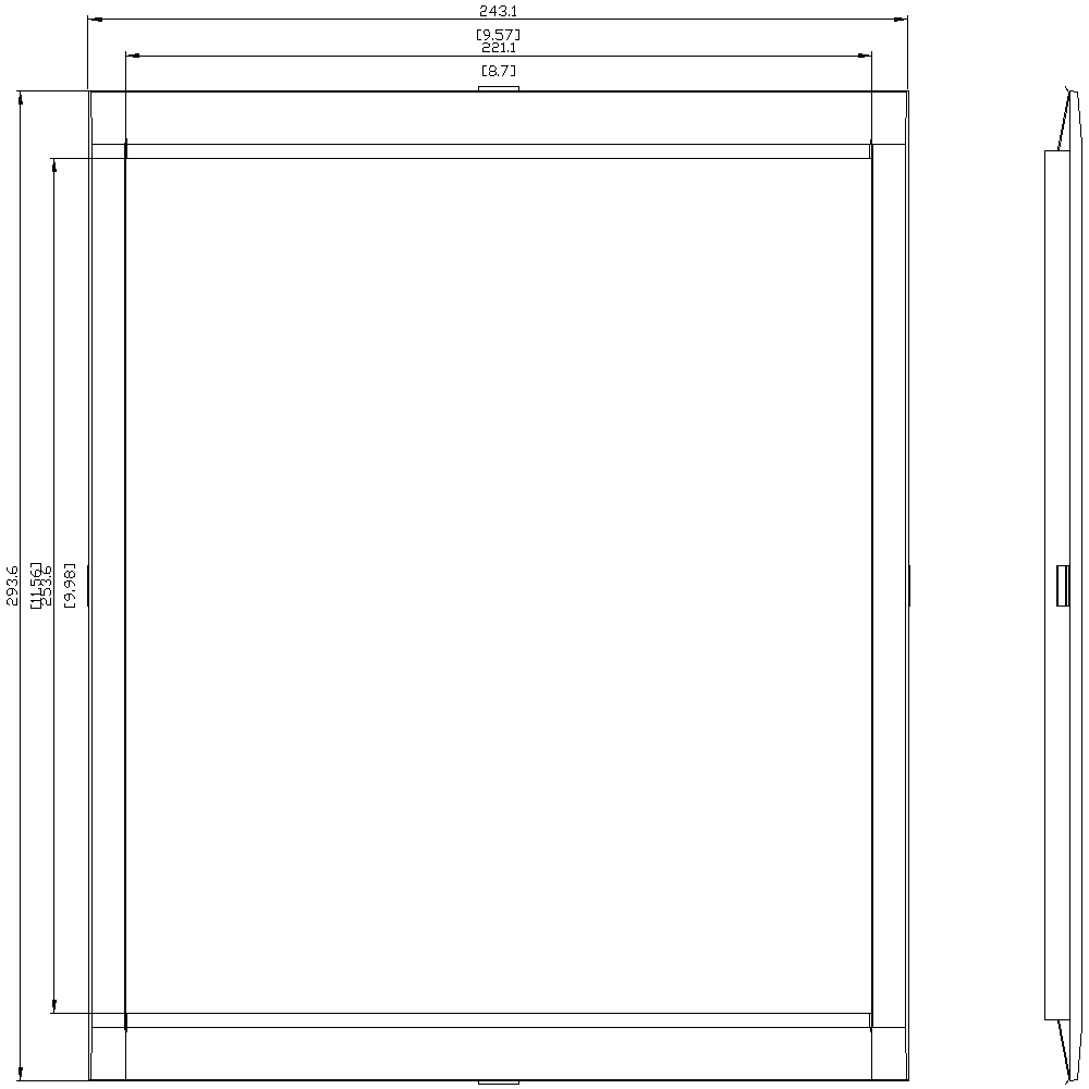 • Cover frame for door cutout: 221.1 x 253.6 mm (WxH)