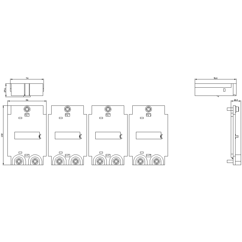 Retrofit kit voltage tap below, breaking capacity N, S, M, H, C, size 1, 4-pole