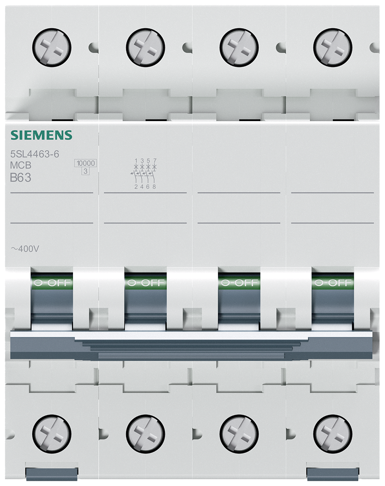 Miniature circuit breaker 400 V 10 kA, 4-pole, B, 63 A