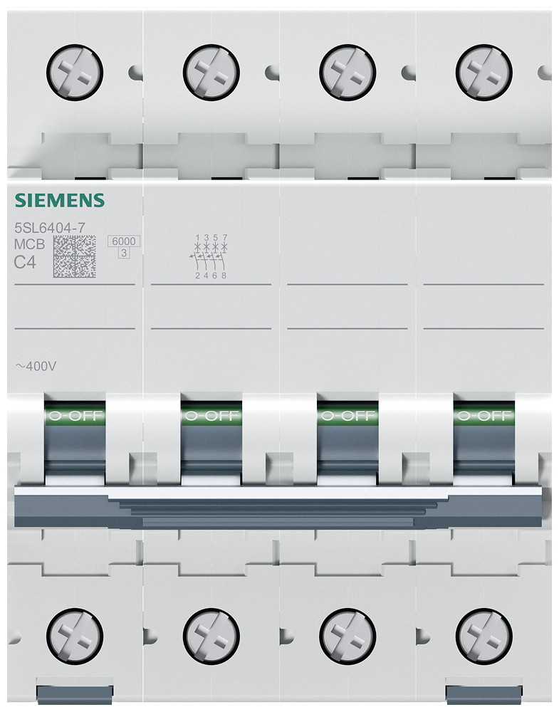 Miniature circuit breaker 400 V 6 kA, 4-pole, C, 4 A