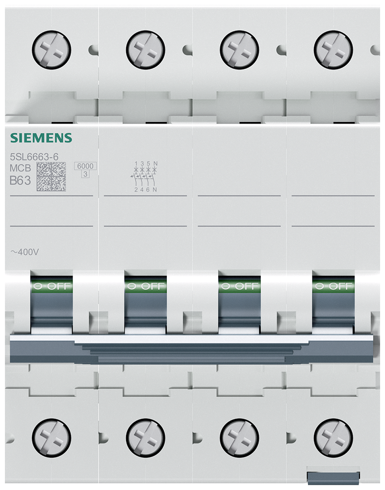 Miniature circuit breaker 400 V 6 kA, 3+N-pole, B, 63 A