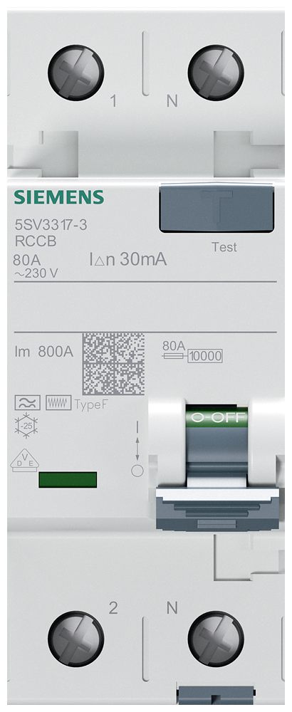 RCCB, 2-pole, type F, short-time delayed, In: 80 A, 30 mA
