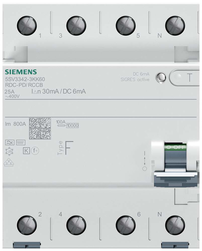 RCCB, 4-pole, type F, In: 25 A, 30 mA, 6mA DC, Un AC: 400 V