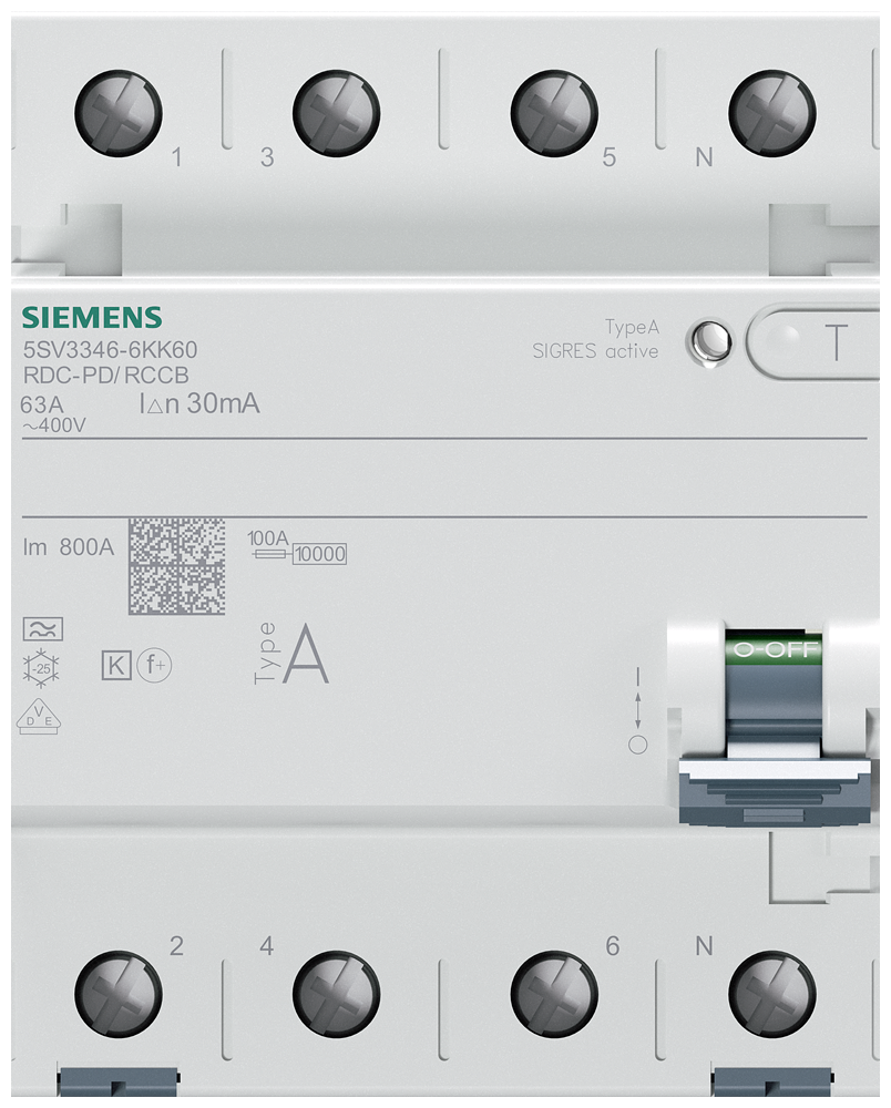 RCCB, 4-pole, type A, In: 63 A, 30 mA, 6mA DC, Un AC: 400 V