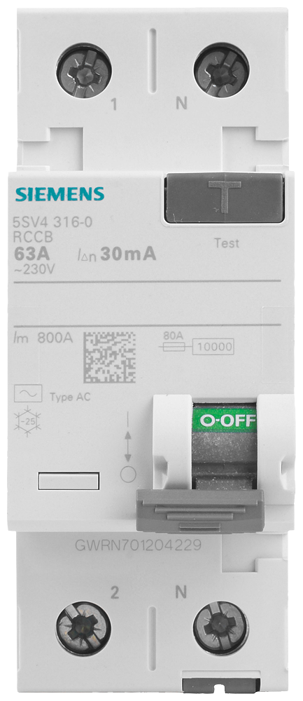 Residual current operated circuit breaker, 2-pole, Type AC, In: 63 A, 30 mA, Un AC: 230 V