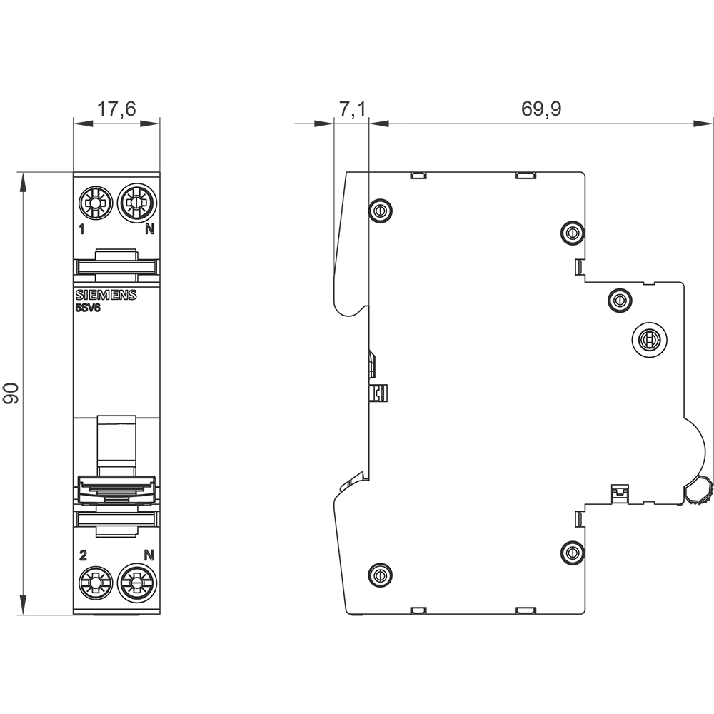• Poles: 1P+N