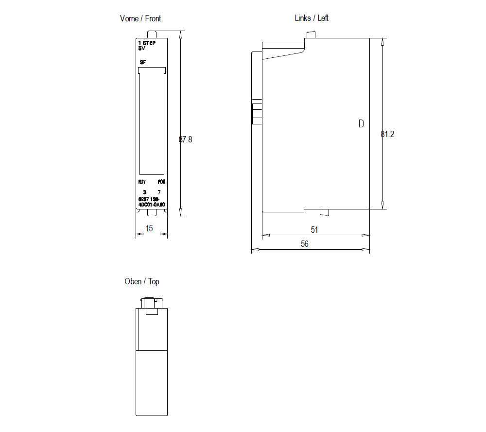 SIMATIC DP, Electronics module for ET 200S, 1 STEP 5 V/204 kHz for stepper motor positioning 15 mm w