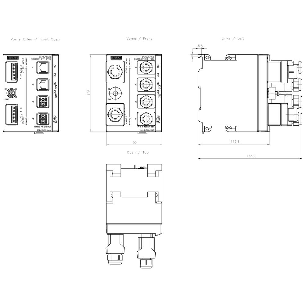 SCALANCE X202-2P IRT PRO, managed Layer 2 switch, 2x RJ45, 2x SCRJ, push-pull