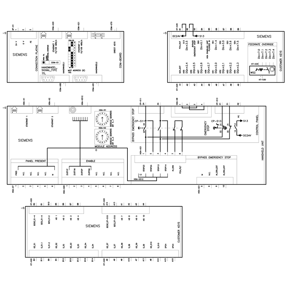 SINUMERIK Pushbutton panel MPP 398 IEH Connection Industrial Ethernet with connection for HT8/HT2 with feedrate override