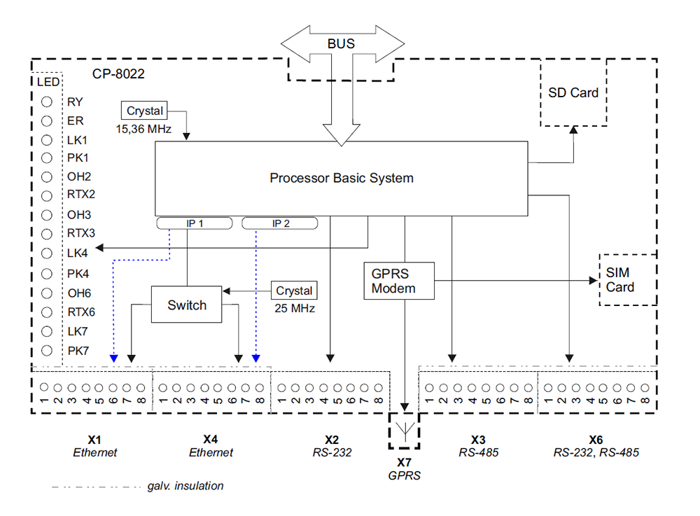 CP-8022 MASTER MODULE WITH GPRS incl. SD-Card 2xRJ45 Ethernet 1xRJ45 RS-232 1x Terminal RS-485 1x Terminal RS-232 or 485 Operation