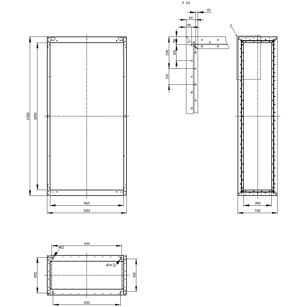 SIVACON, Supporting structure, for standard Empty enclosure, H: 2000 mm, W: 1000 mm, T: 500 mm, zinc-plated
