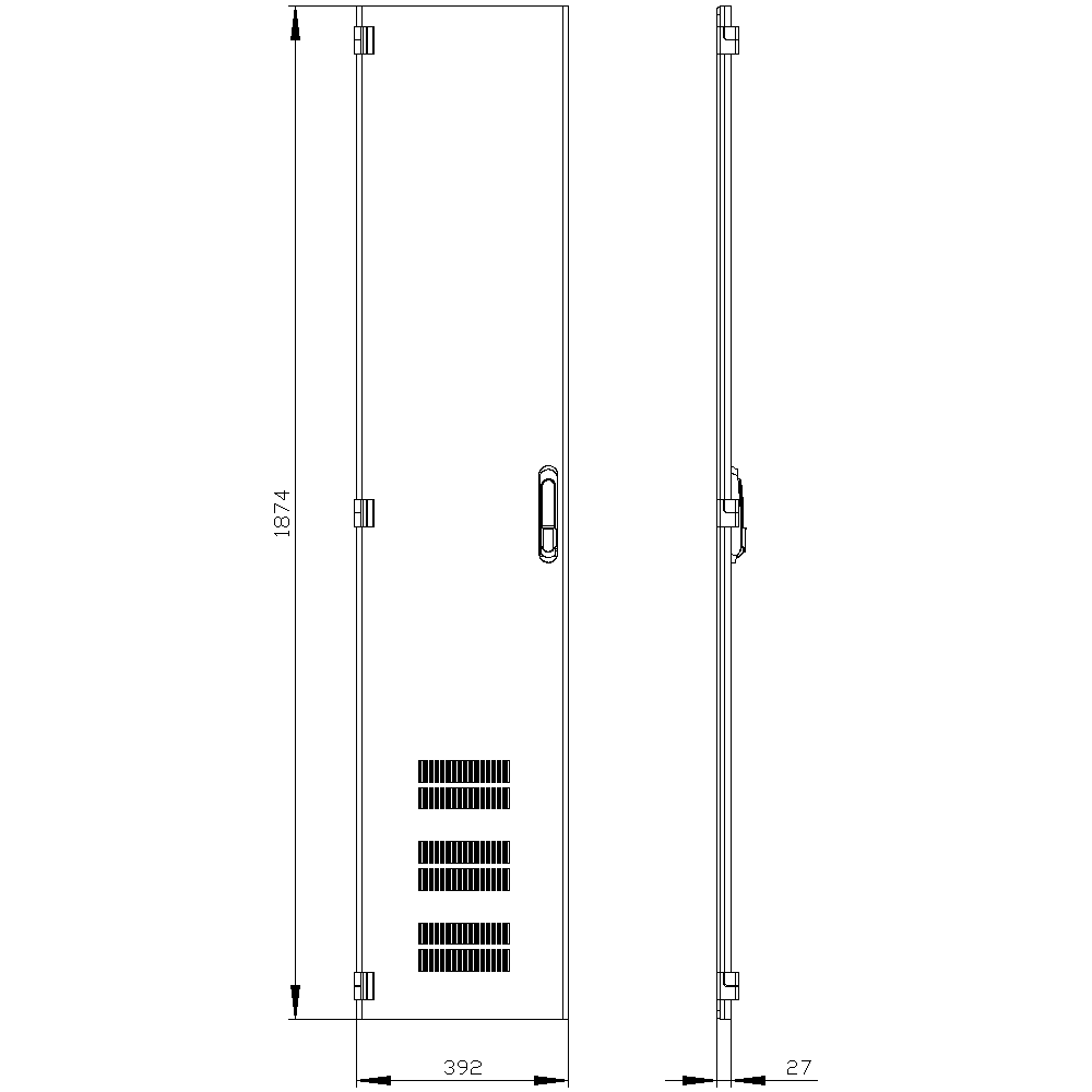 SIVACON, door, left, ventilated, IP40, H: 2000 mm, W: 400 mm, RAL 7035, protection class 1