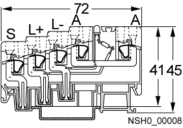 • Initiator terminals: L+, L-, shield, A