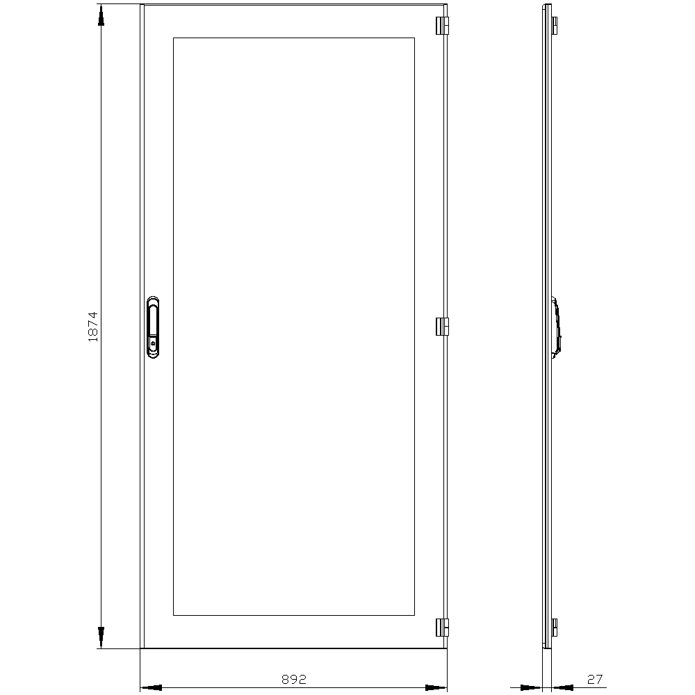 SIVACON, door, right, inspection window, IP55, H: 2000 mm, W: 900 mm, RAL 7035, protection class 1
