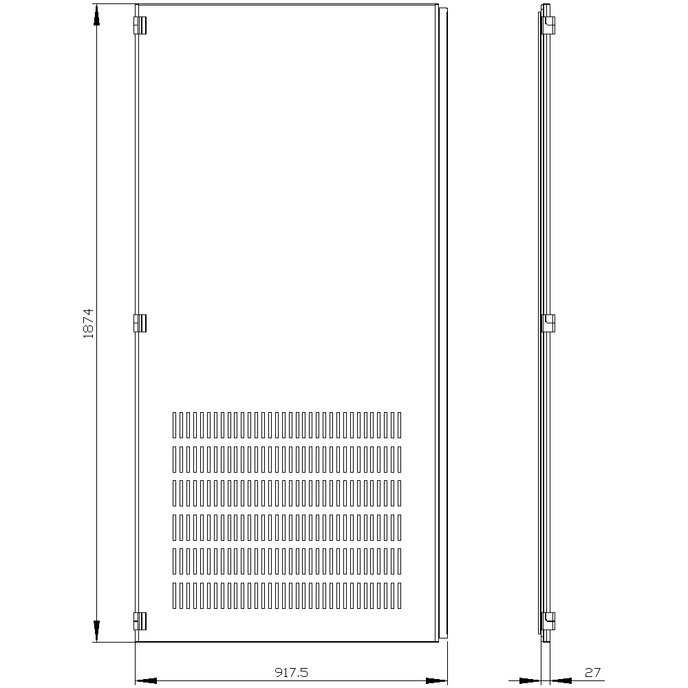 SIVACON, door half, left, with ventilation openings, IP20, H: 2000 mm, W: 900 mm, RAL 7035, protection class 1