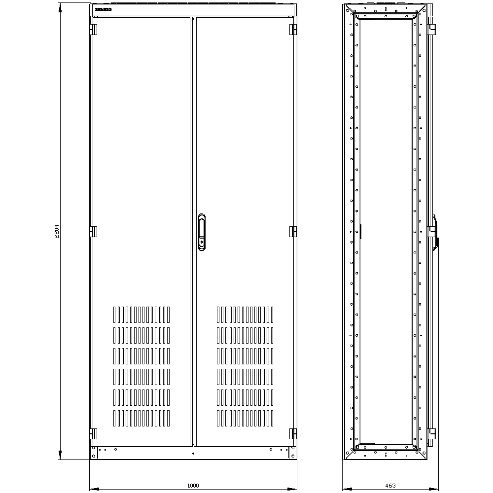 SIVACON, Control panel Empty enclosure, without side panels, according to IEC 62208, with Ventilation openings IP20, H: 2200 mm, W: 1000 mm, T: 400 mm