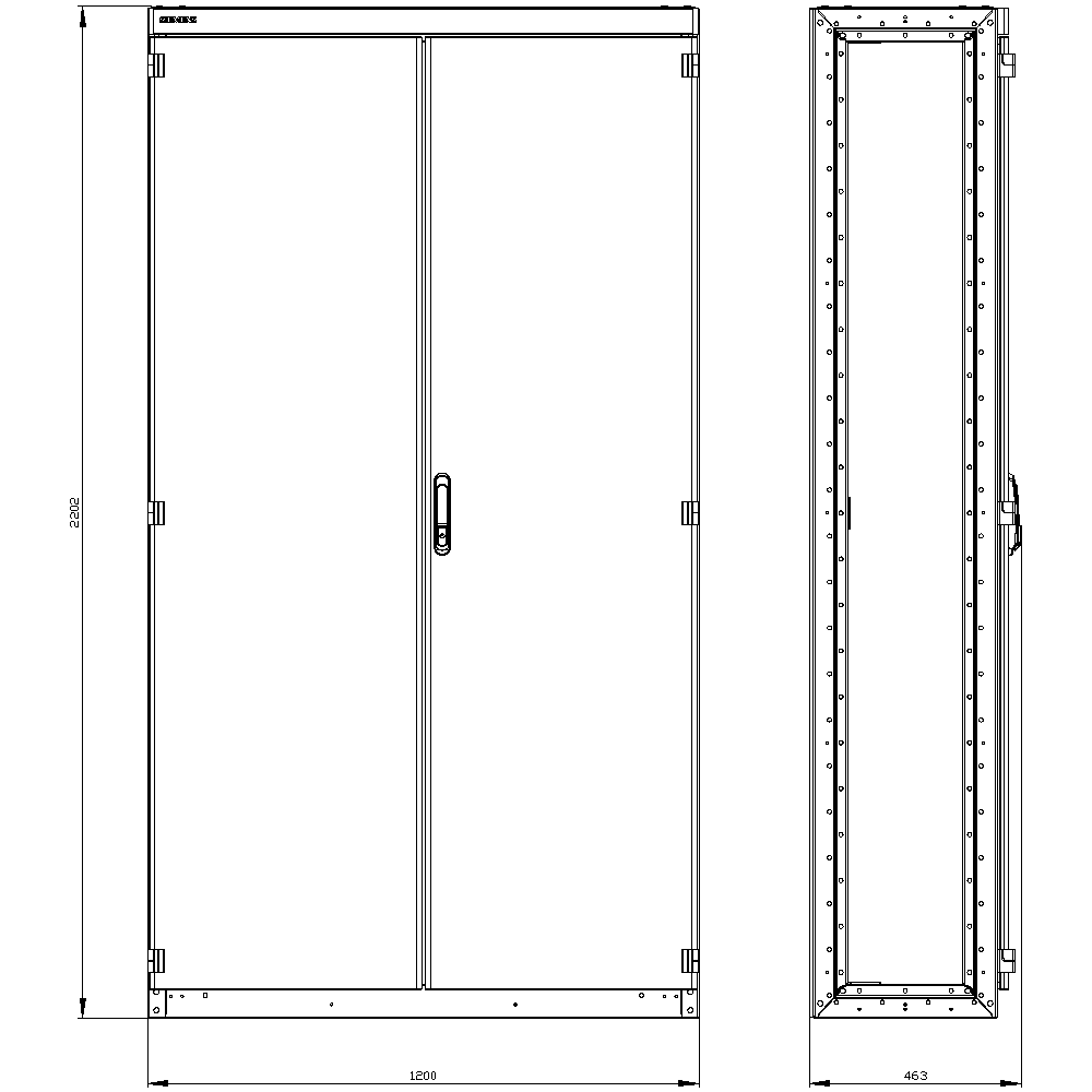 SIVACON, Control panel Empty enclosure, without side panels, according to IEC 62208, IP55, H: 2200 mm, W: 1200 mm, T: 400 mm
