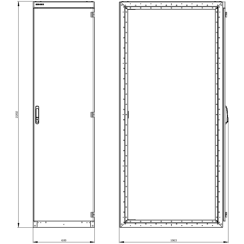SIVACON, Control panel Empty enclosure, without side panels, according to IEC 62208, IP55, H: 2200 mm, W: 600 mm, T: 1000 mm