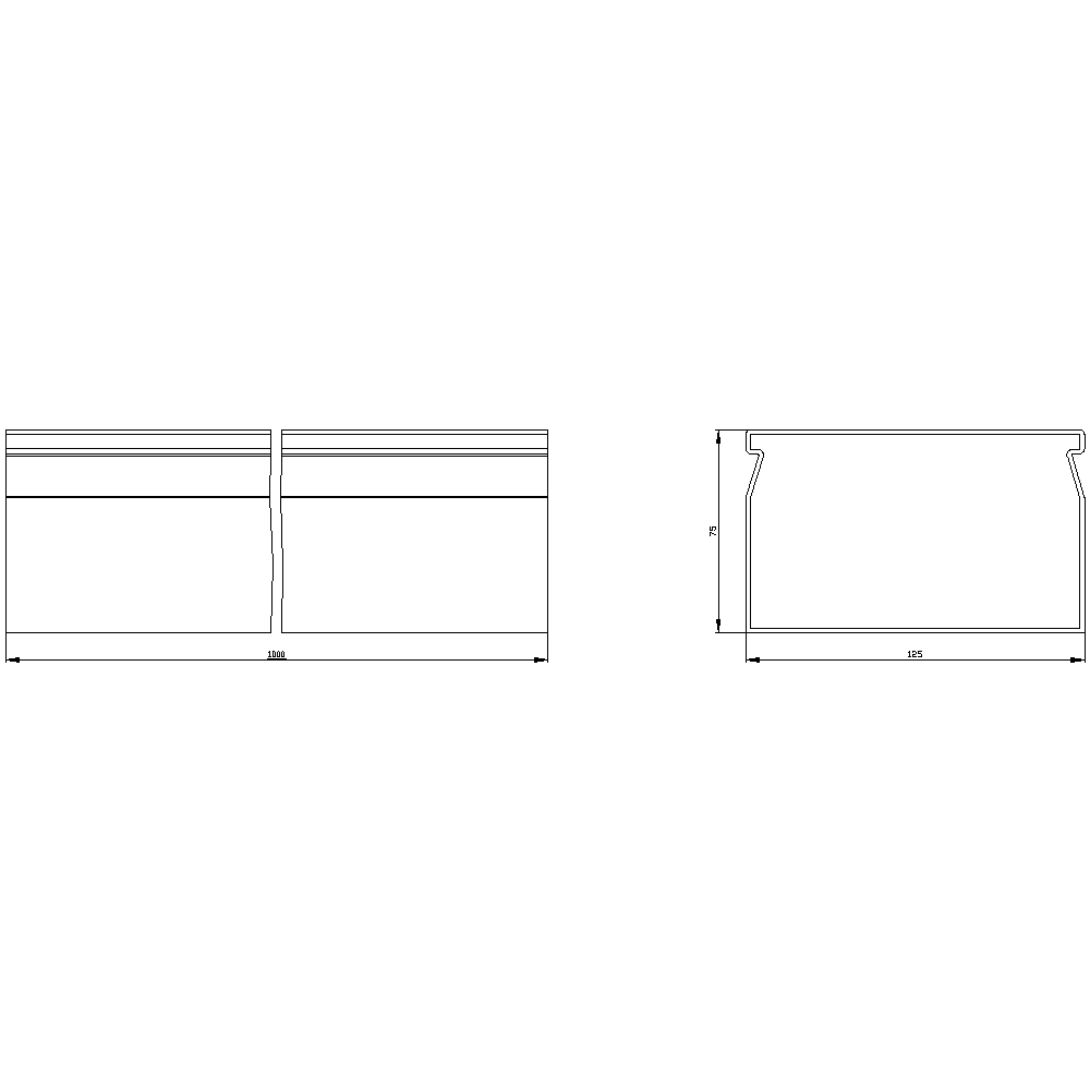 • Dimensions: 2000 mm (L) x 125 mm (W) x 75 mm (H)