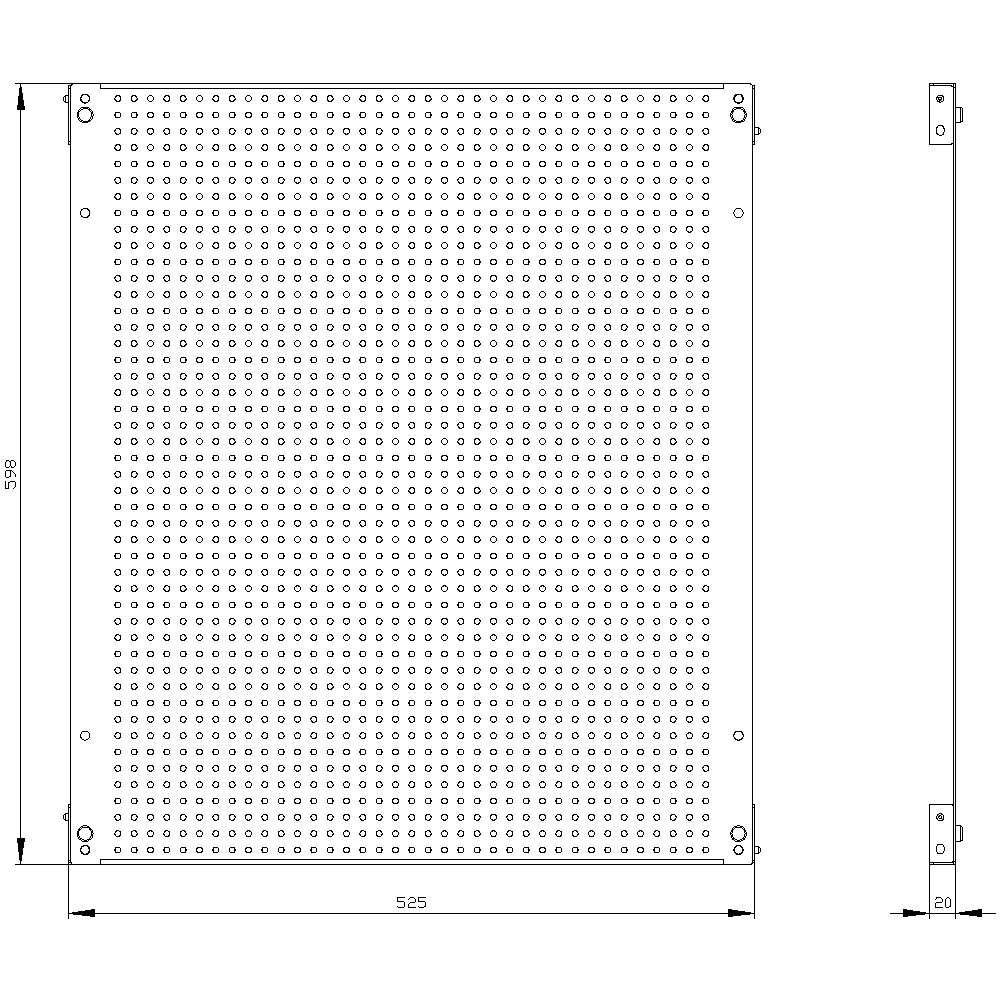 SIVACON, mounting plate, mounting with bracket, perforated, H: 600 mm, W: 600 mm, zinc-plated