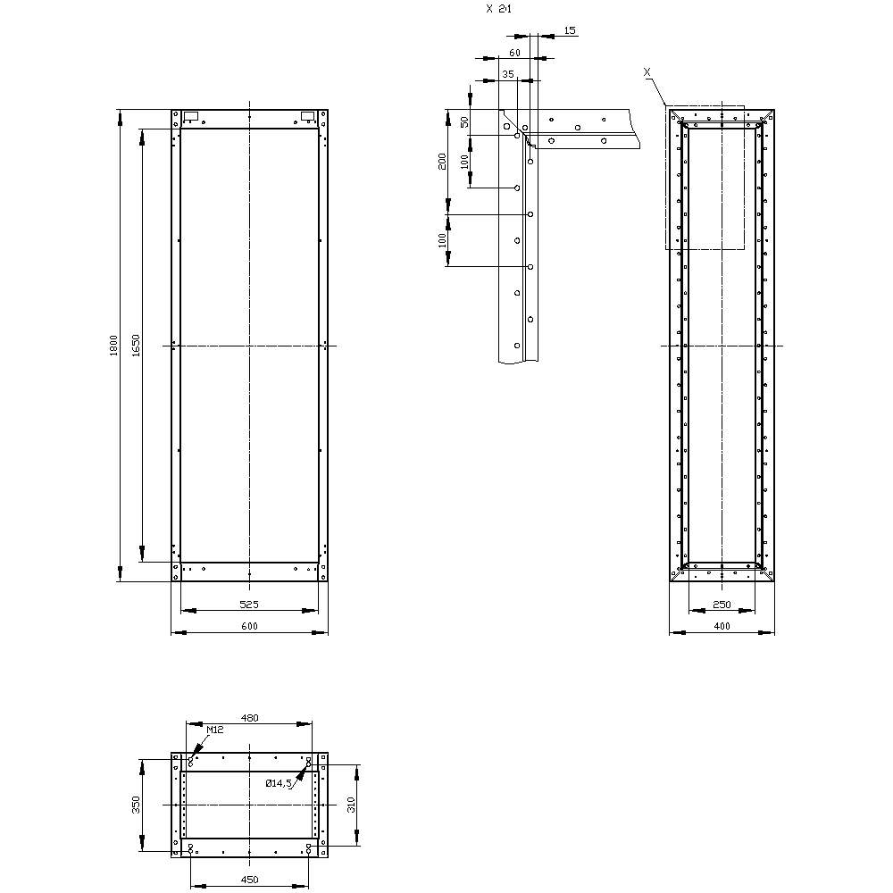 SIVACON, Supporting structure, for standard Empty enclosure, H: 1800 mm, W: 600 mm, T: 400 mm, RAL 7035