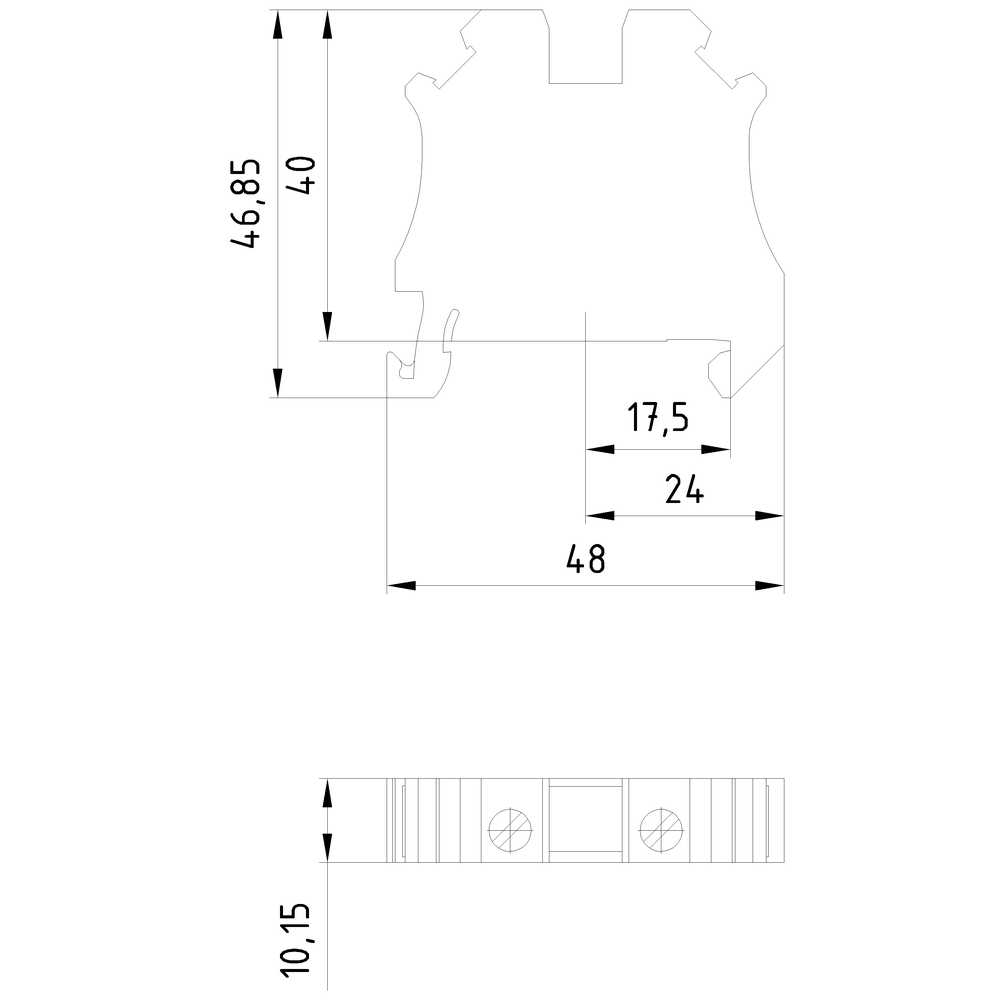 Through-type terminal with screw connection, terminal size 10.0 mm2 terminal width 10.2 mm