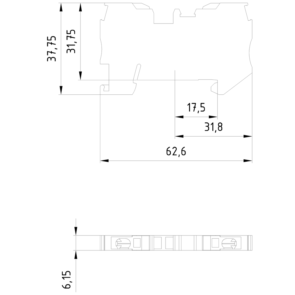 Through-type terminal with quick-connect technology, cross-section: 0.5-2.5 mm2, width: 6.2 mm
