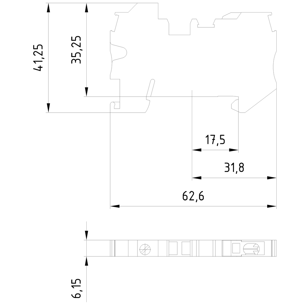 Hybrid through-type terminals with quick-connect technology and screw connection