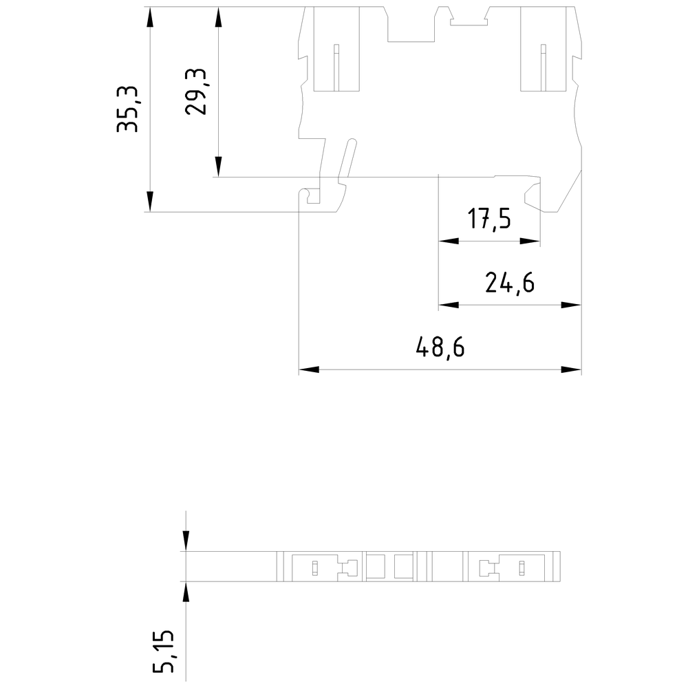 Through-type terminal, plug-in connection at both ends, Cross-section 0.08-2.5 mm2, Width: 5.2mm, Co