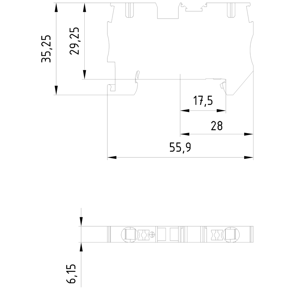 PE through-type terminal 4 mm2, 6.2 mm width green/yellow