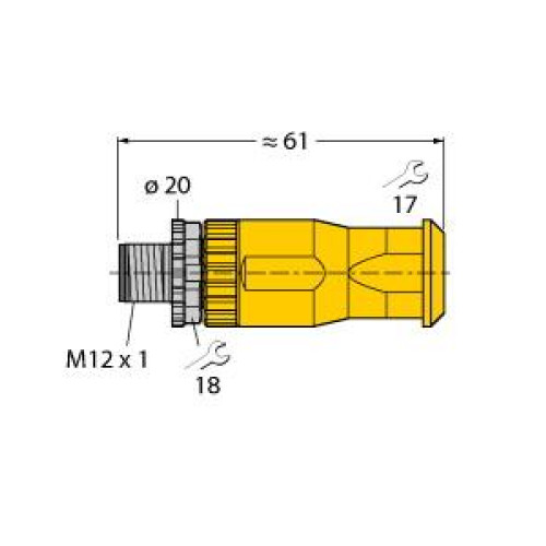 Field-Wireable Connector, Male Connector M12 × 1, Straight