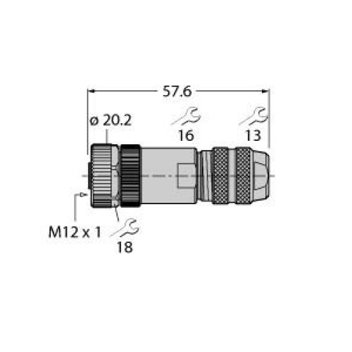 Field-Wireable Connector, Female Connector M12 × 1, Straight