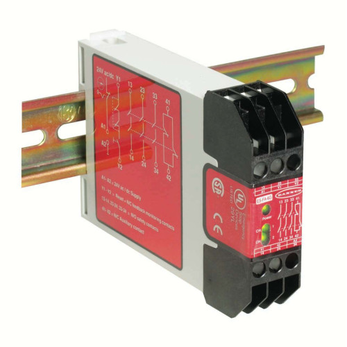 • Safety relay module for E-Stop, Rope Pull, and Interlock applications